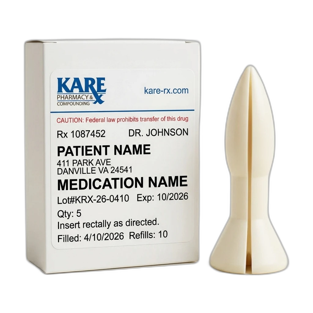 This compounded suppository (often called a "rectal rocket") combines hydrocortisone 3%, lidocaine 2%, and nifedipine 0.3% to help ease pain, swelling, and itching caused by hemorrhoids or anal fissures. The special shape lets part of the suppository stay outside the anus while the rest sits inside, giving medicine to both internal and external areas at the same time. Your healthcare provider may choose this product when creams or over-the-counter treatments are not enough.